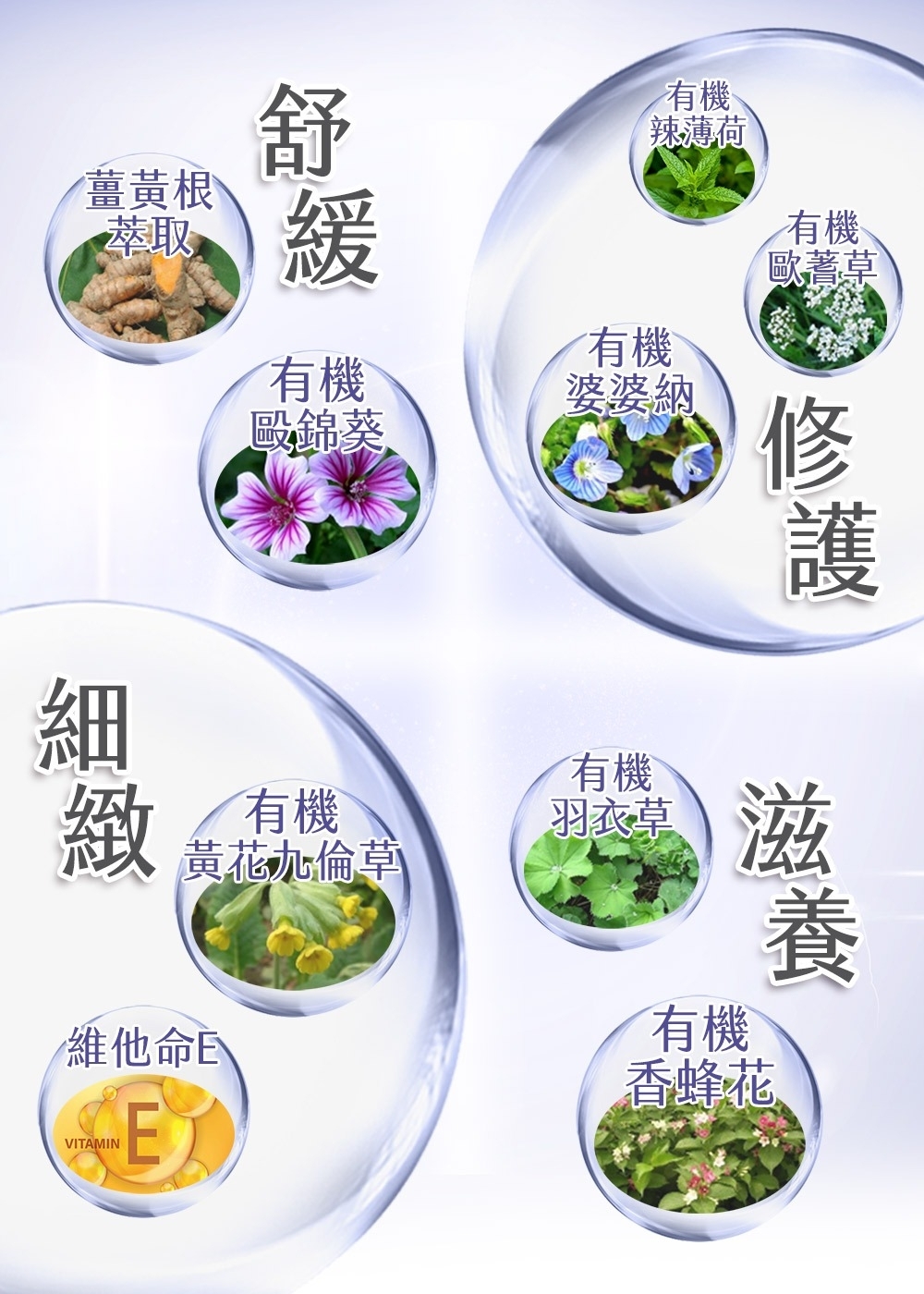 ■7種歐盟認證有機花草植萃精華