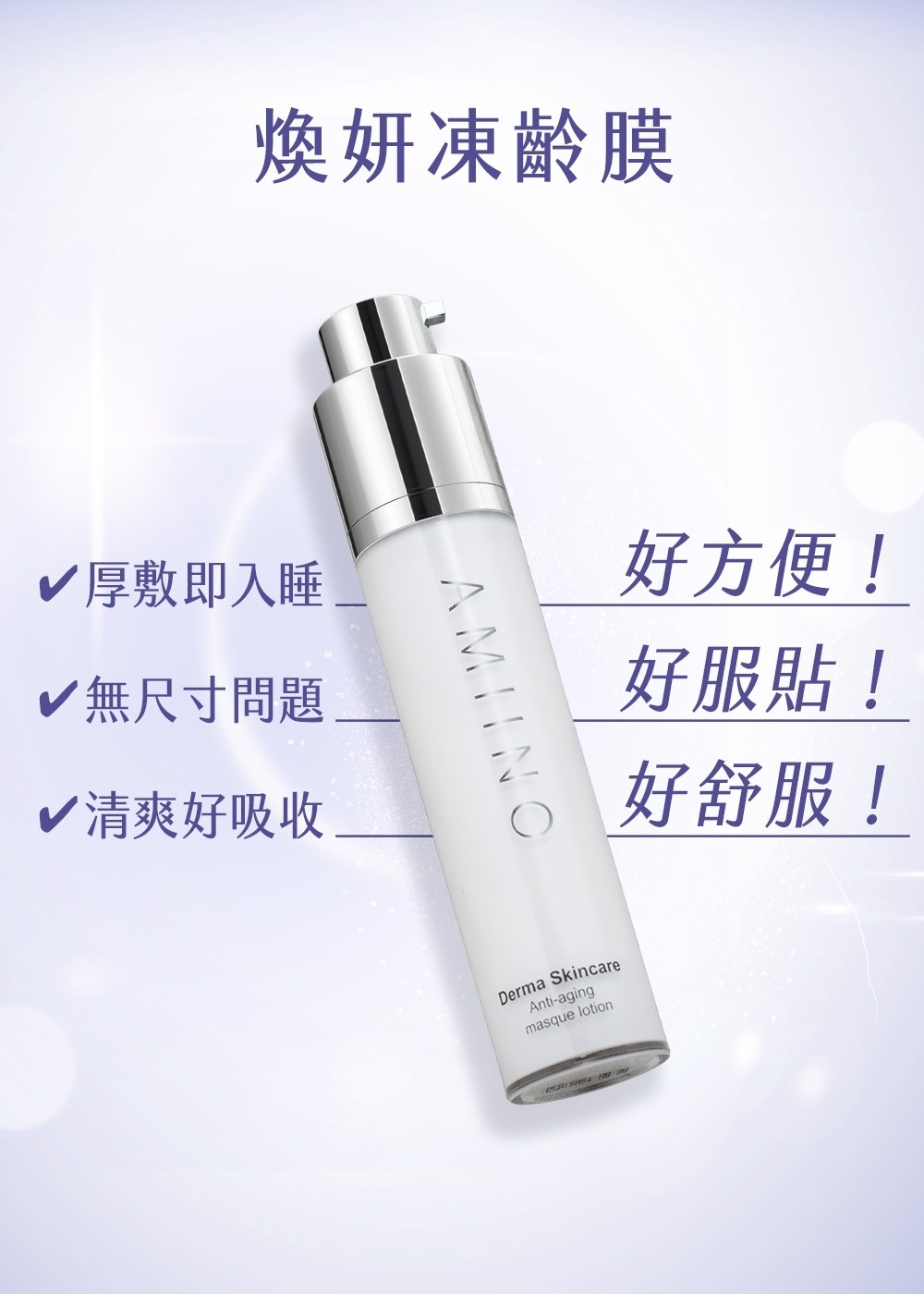 使用方法:於清潔臉部後,旋轉瓶蓋即可按壓,取適量均勻塗抹於臉部,輕輕按摩讓肌膚吸收,可作為面膜使用,不須再用水清洗。因成分含有薄荷萃取精華的清涼感,故使用時請避開眼睛四周,日夜皆可使用。